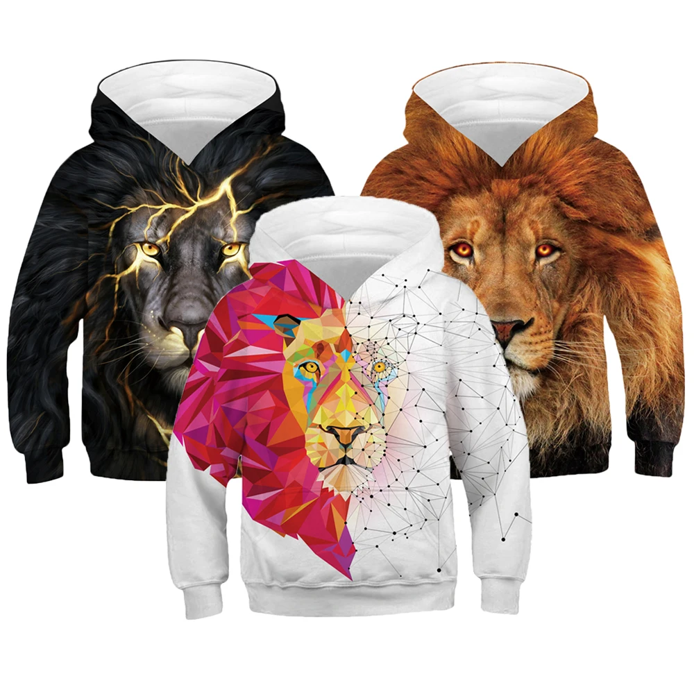Low Price 3-12 Years 3D Print Lion Boys Hoodies Teens Autumn Hooded Sweatshirt For Boys Kids Clothes Long Sle